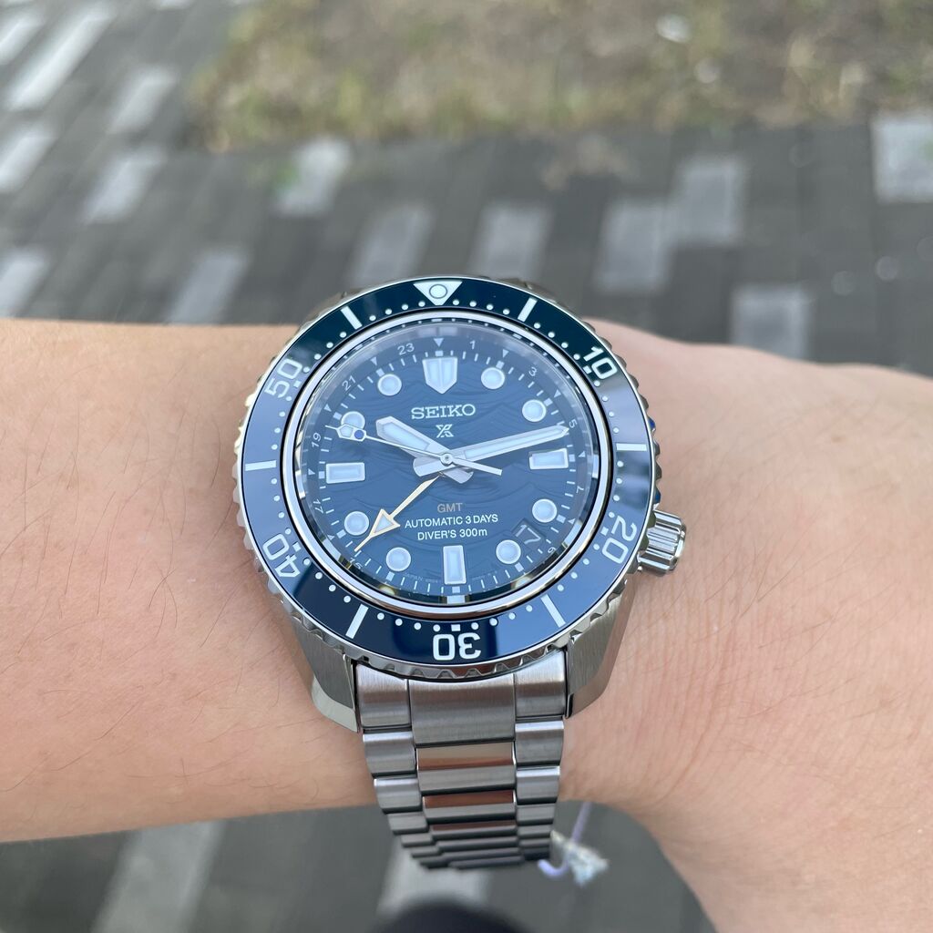 こちらは、セイコー ダイバーズウオッチの象徴として裏蓋に刻印されている「ウェーブマーク」をインスピレーション源として荒々しい海の情景を彷彿とさせるダイナミックな型押しパターンをダイヤルに施している限定モデルになっています。