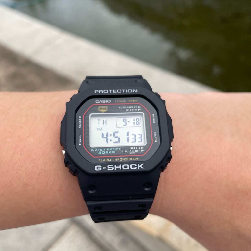 こちらのお時計は、初代G-SHOCKであるDW-5000Cの復刻モデルで発売から人気のモデルになっております。