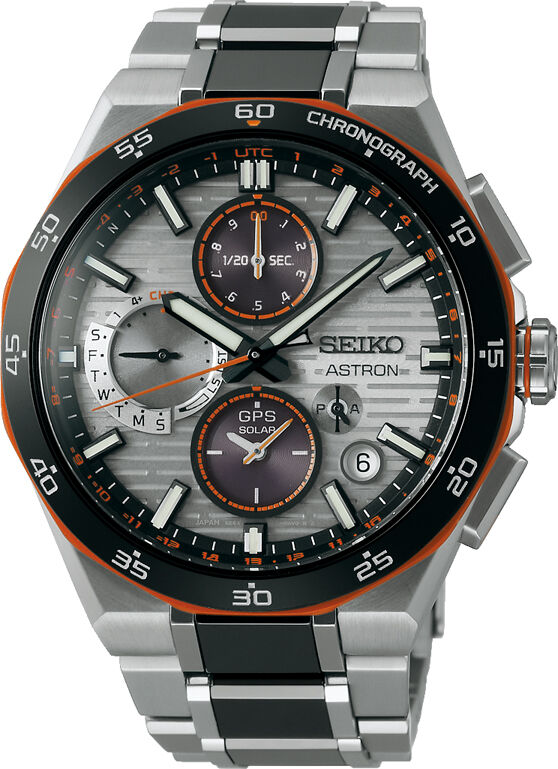 また、ブレス部分の中駒にはブラックセラミックスを組み合わせており、リューズ部分やボタン部分など随所にネオンオレンジのカラーをアクセントとして加えていることでスポーティーなデザインになっています。